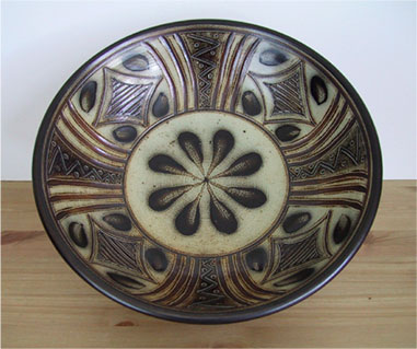 Using a cream-coloured stoneware base she painted beautiful flower,